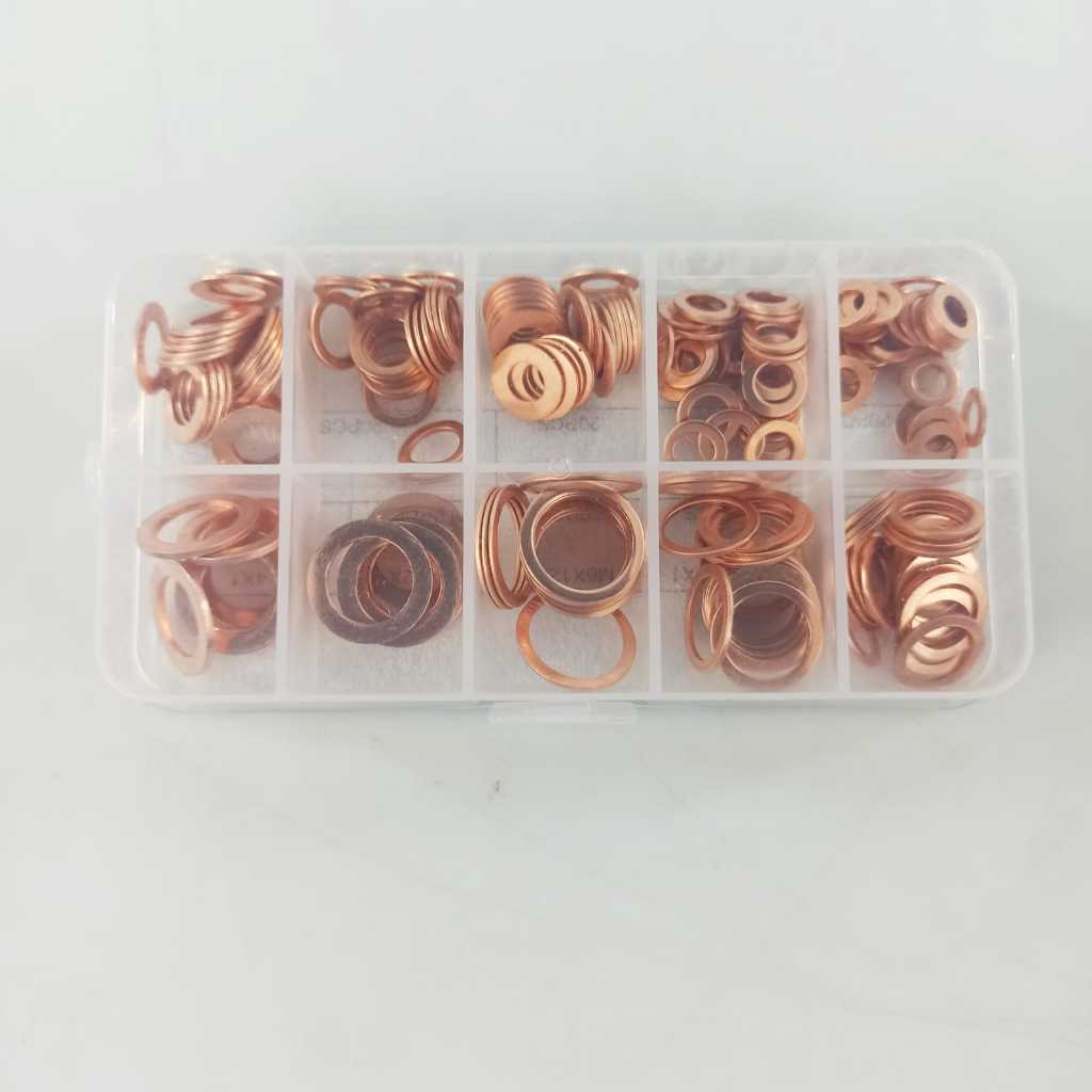 Ring Baut Tembaga Asli Gasket Bolt & Nut Anti Rembes Flat Ring 200 PCS Mesin Mobil