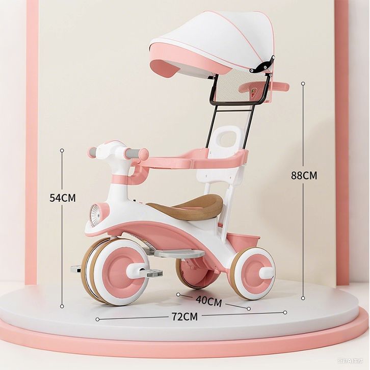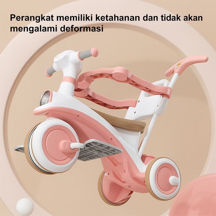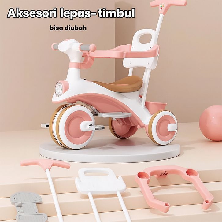 SEPEDA ANAK RODA TIGA BEIGE STROLLER BABY DENGAN LAMPU DAN MUSIK 1-8 TAHUN