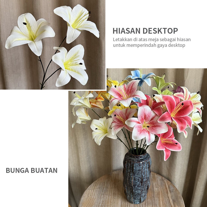 Bunga Lily Latex Cabang 3 Bunga Artificial Bahan Lateks Tiger Lilies Real Touch Silk Flower Hiasan Rumah Dekorasi Pelami