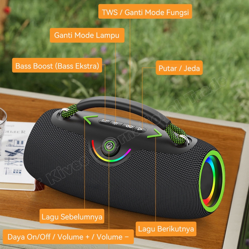 Speaker Bluetooth Outdoor KV-MW84 Black BIG Size Full Bass RGB Dual Speakers High Power IPX6