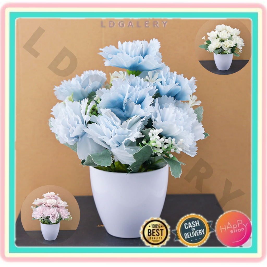 LDG POT115 Tanaman Hias Bunga Anyelir Carnation Artificial Bunga Plastik Dekorasi Rumah Ruangan Import Murah