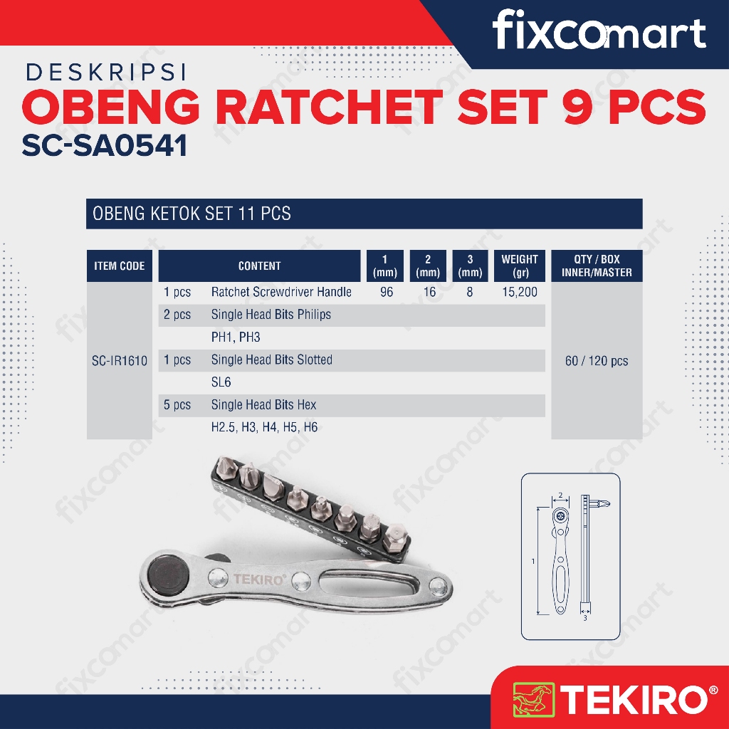 Tekiro Obeng Ratchet Set 9 Pcs / Ratchet Screwdriver Set