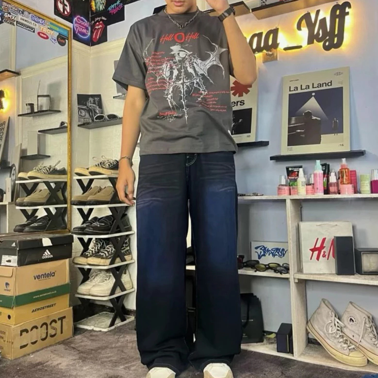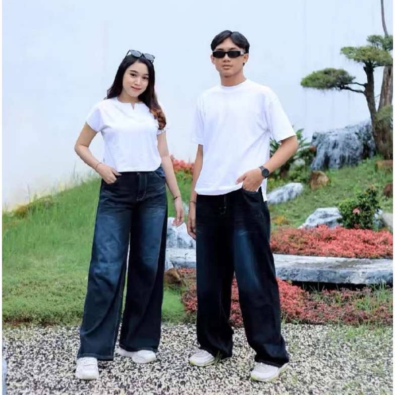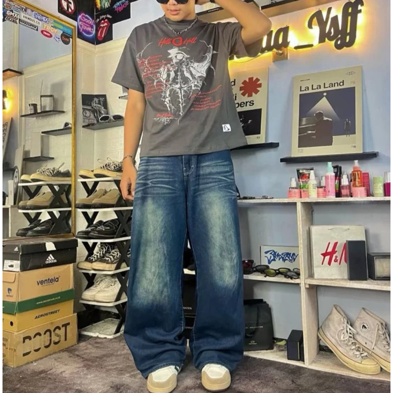 Baggy loose Retro whisker Jeans Unisex lowwaist Haightwaist Celana Scena Gombrong Jumbo Oversize premium korean style