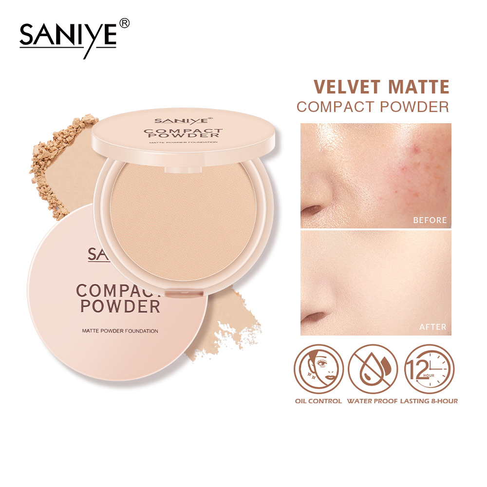 SANIYE [BUY 1 GET 1]Compact Powder Oil Control Wajah Matte Bedak Padat Full Coverage Powder Tahan Lama Wajah R5006
