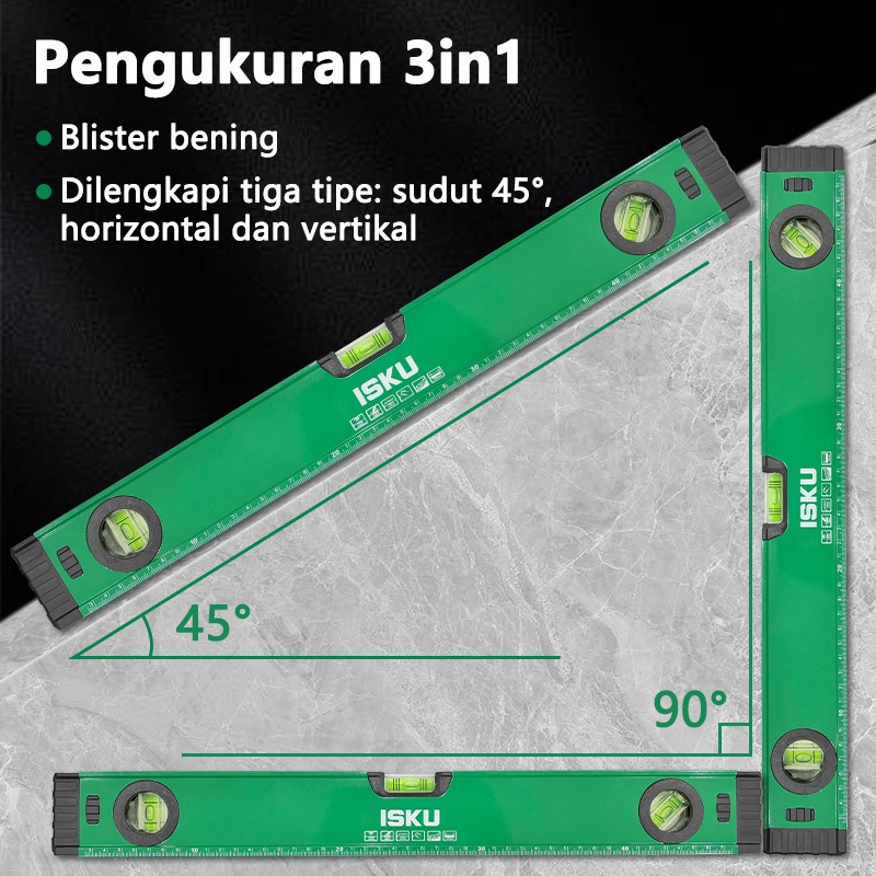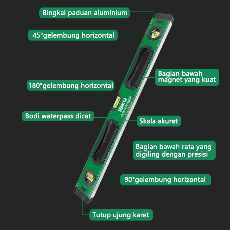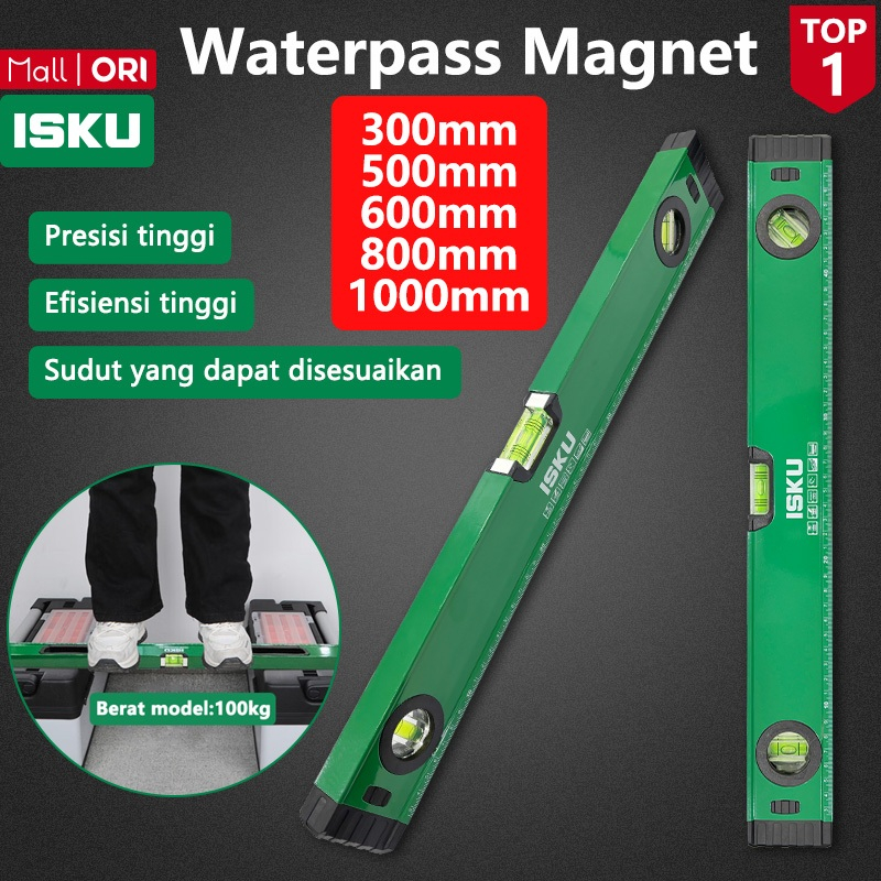 ISKU Spirit Level Waterpass Magnet Aluminium Akurat 30/50/60/80/100CM Penggaris Pengukur Horizontal Akurat Perkakas Horizontal/ Vertical/ 45 Degree