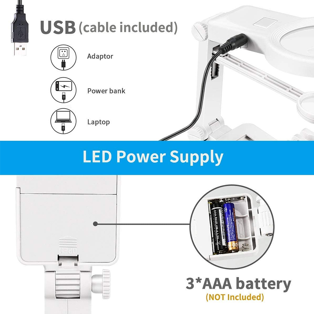 A2T - Alat Solder Penjepit PCB + Kaca Pembesar 3X/4.5X + Lampu + Stand Holder