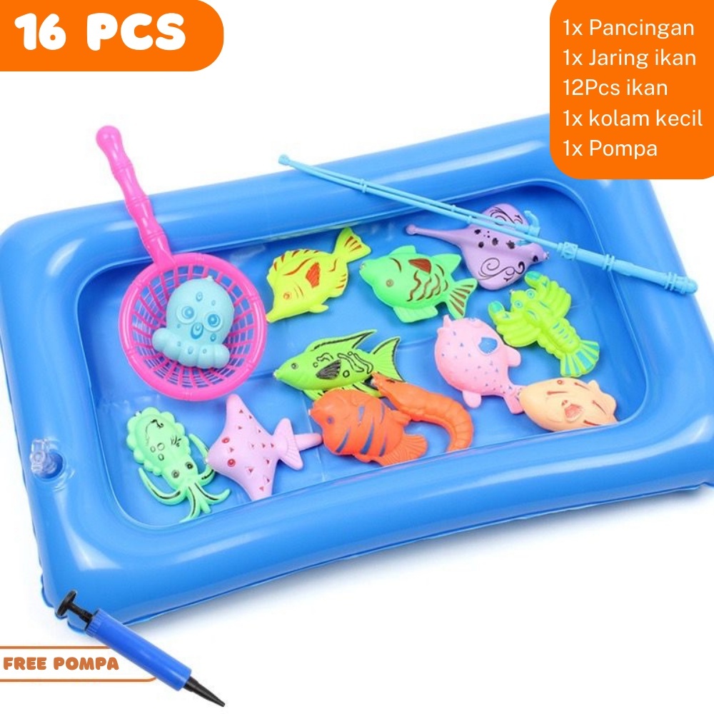 FUNTOY 16/40/50 PCS MAINAN PANCING IKAN MAGNET DAN KOLAM PANCINGAN MAGNET ANAK