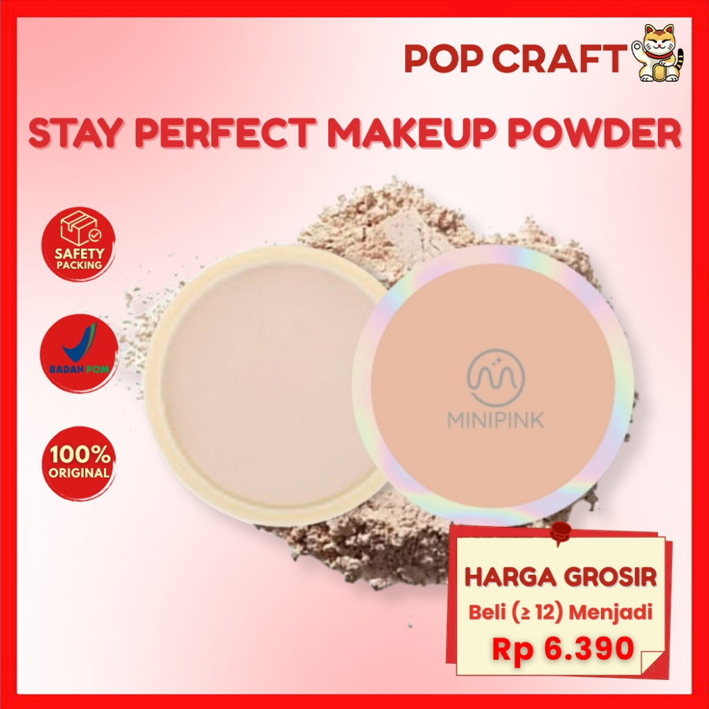 PC BPOM MINIPINK Stay Perfect Makeup Powder Waterproof Bedak Wajah Foundation Bedak Padat MP057