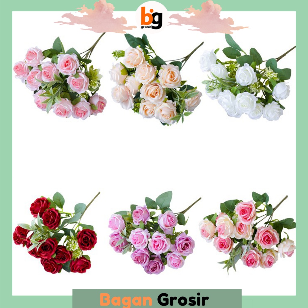 BG Bouquet Bunga 5 Cabang Mawar Artifisial Dekorasi Hiasan Seserahan Buket Palsu PBP227