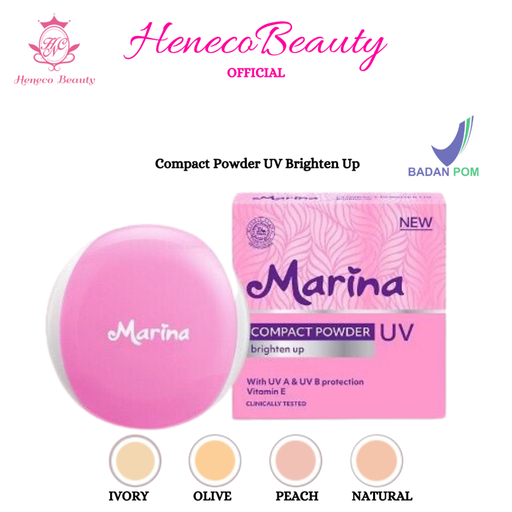 MARINA Compact Powder UV Brighten Up 12gr Ivory Olive Peach Natural \ Bedak Padat Marina