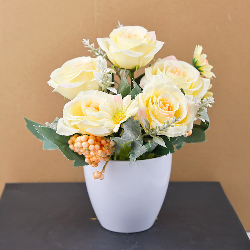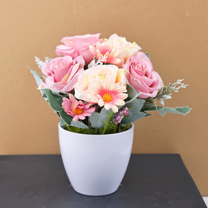 DS POT112 Tanaman Hias Artificial Plastik Bunga Mawar Hidrangea Dekorasi Ruangan Import Murah