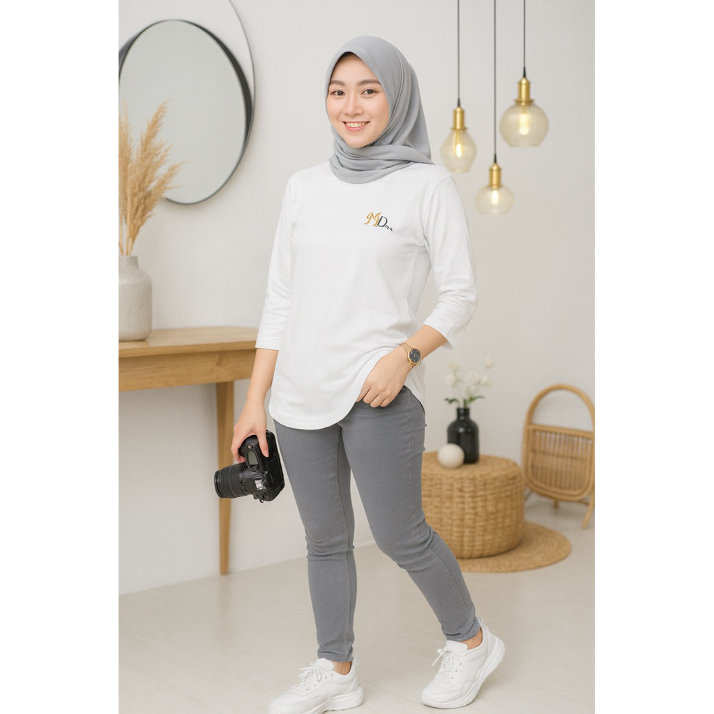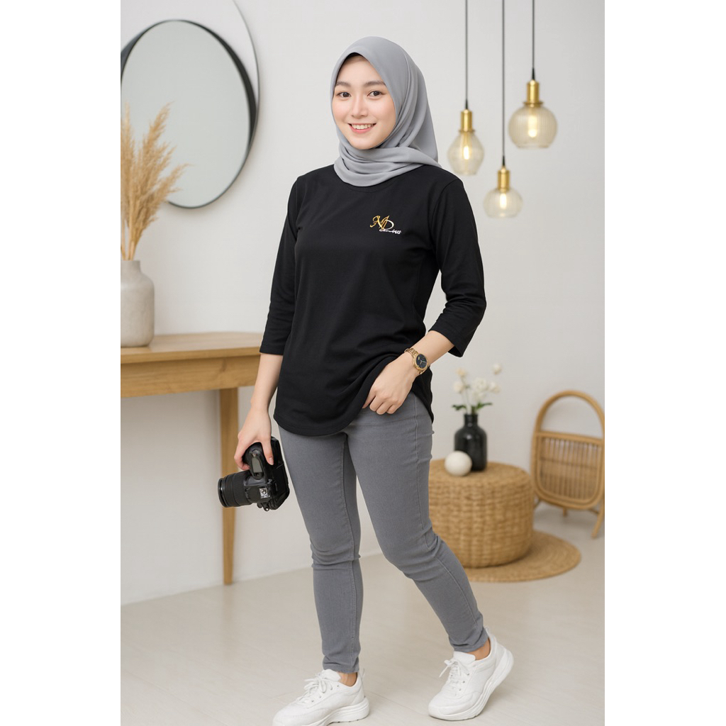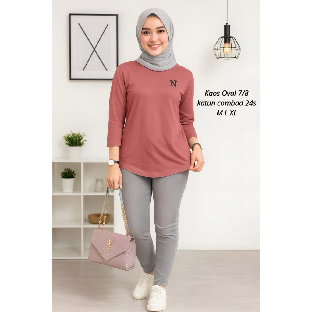 Kaos Oversize Oval Wanita Lengan 7/8 Katun Nevada