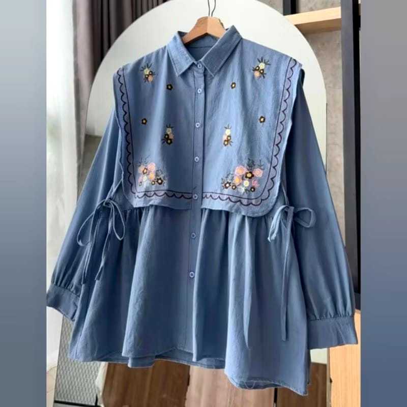Baju Atasan Wanita Terbaru Bordir Bunga Kemeja Wanita Jumbo
