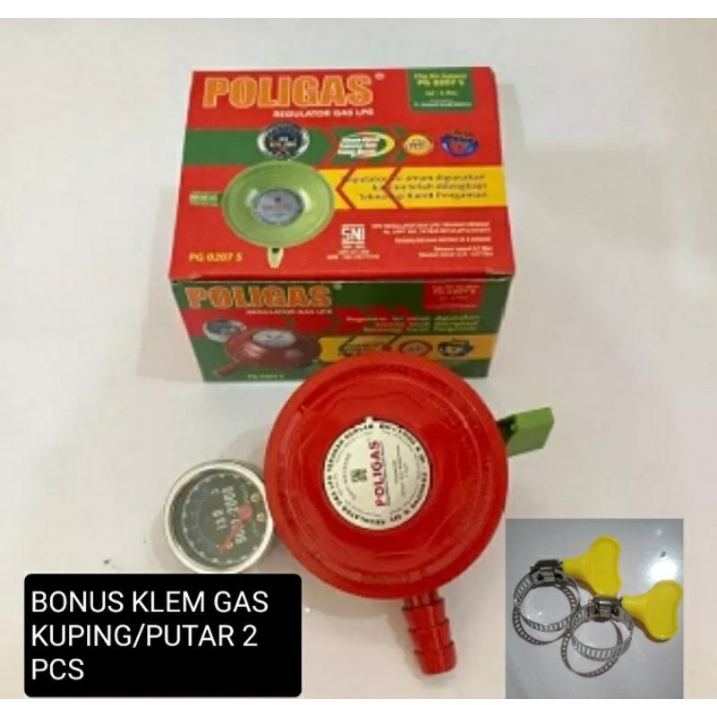 POLIGAS REGULATOR PG -2070S SINGLE LOCK FREE KLEM GAS 2 PCS MODEL PUTAR