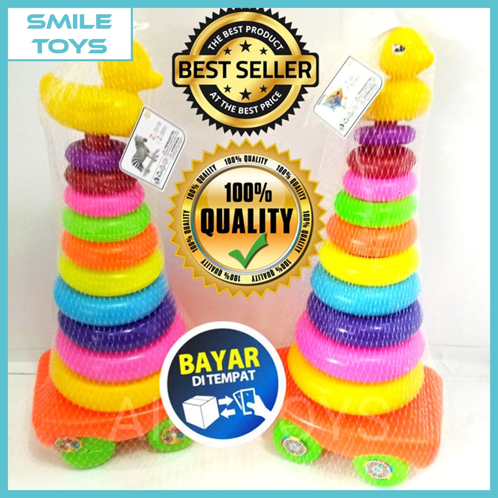 Smile - Mainan Edukasi Anak Ring Donat Susun Roda 4 Ring 10 Ring Plus Bebek