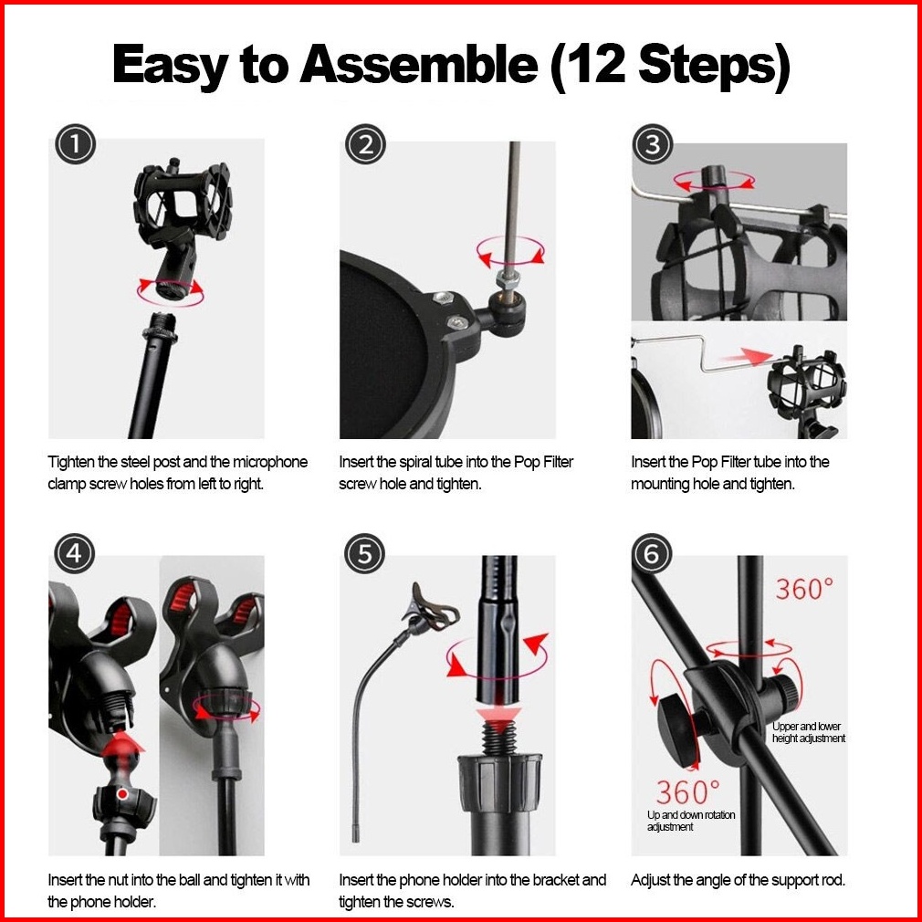 Stand Mic Microphone Degree Berdiri Plus Holder Hp 360 Recording Stand Tiang Penyangga Microphone Karaoke Menyanyi Holde