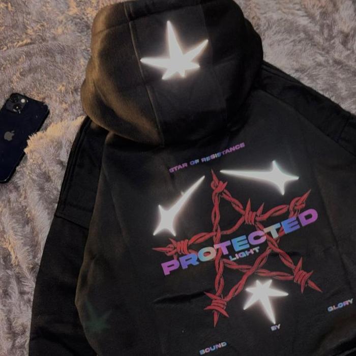 JDMCLOTHING - HOODIE BOXY MOTIF PROTECTED KUPLUK SHERPA SABLON DTF + REFLECTIVE FLEECE 280-300 GSM - HITAM, M
