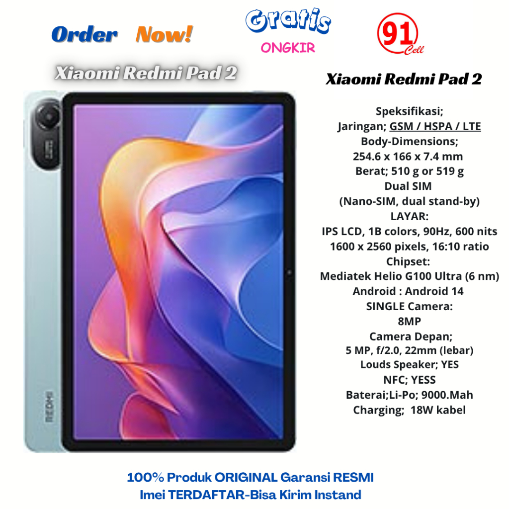 Xiaomi Redmi Pad 2 /Pad2 wifi only Original [Ram4/128gb] Garansi Resmi