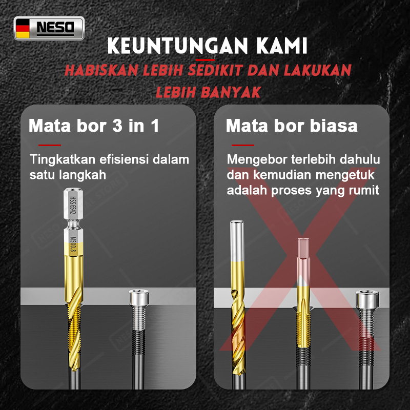 NESO Mata Bor Pembuat 6PCS Ulir Drat Drill Tap Set Hex Twist Spiral Tapper Baut Bit Drilling Tapping Deburring Tapper Baut Bit 0.5/0.75/0.8/1/1.25/1.5mm HSS