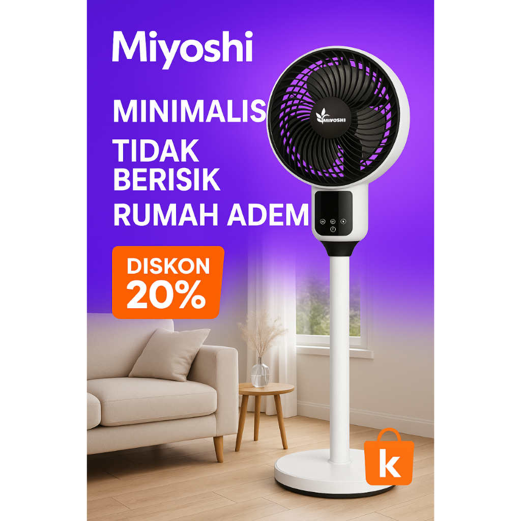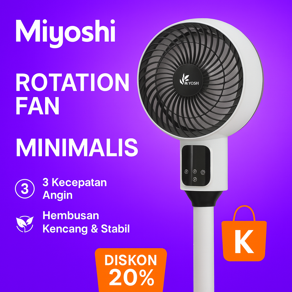 [Star] Miyoshi Kipas Angin Berdiri 9 Inch M816 Rotation 90, Remote/Non Remote, Angin Kencang Hemat Listrik