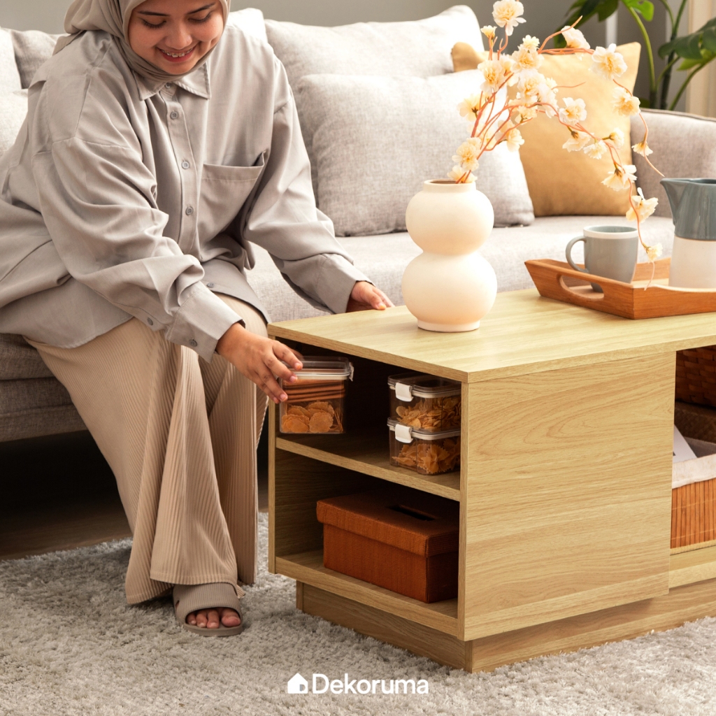 Moku Meja Tamu Minimalis dengan Rak Susun dari Kayu Olahan - Coffee Table
