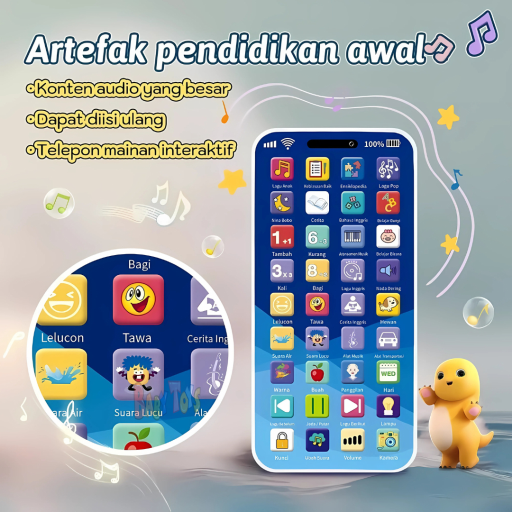 BabyToys Mainan Handphone Edukasi Anak Bunyi Bayi HP Edukatif Lampu 36 Tombol Piano Lagu Musik Toys
