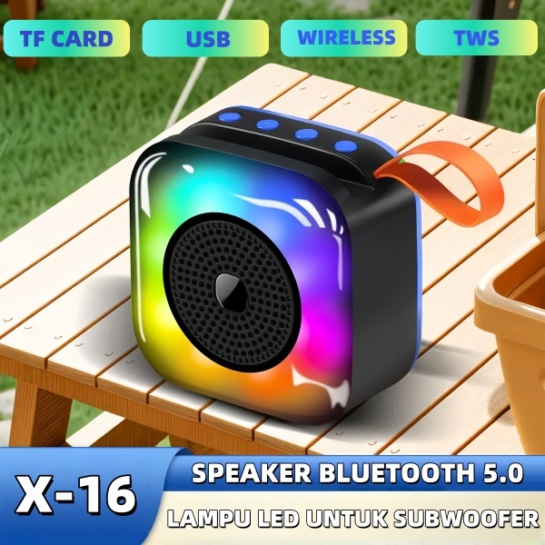MUSIK BOX BLUETOOTH SPEAKER BLUETOOTH WIRELESS X-16 LAMPU LED RGB HP SUPPORT TWS 2IN1 SALON AKTIF BLUETOOTH FULL BASS