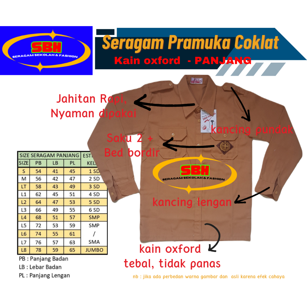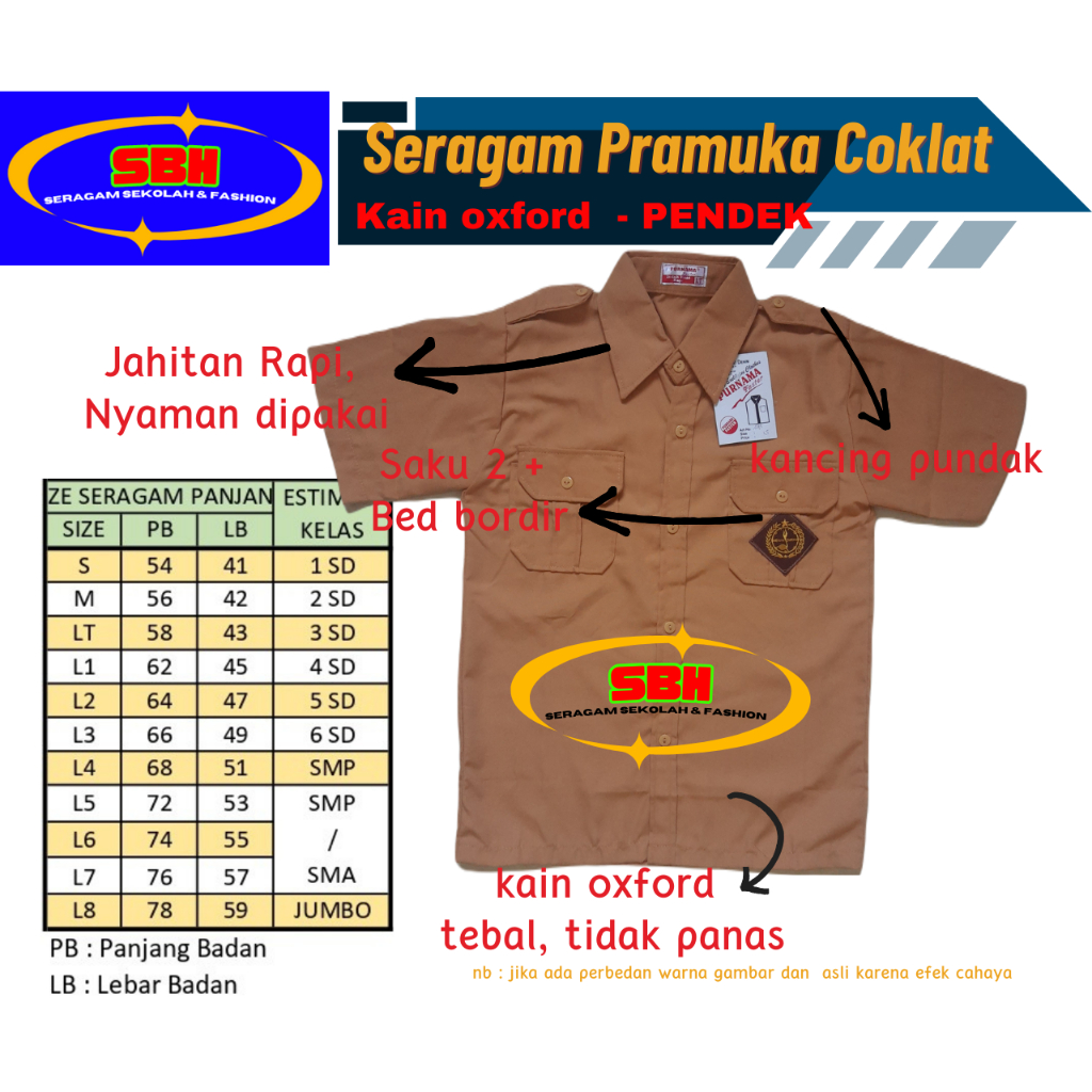 Seragam sekolah baju pramuka coklat (kain Oxfrord) pendek / panjang SD / SMP / SMA