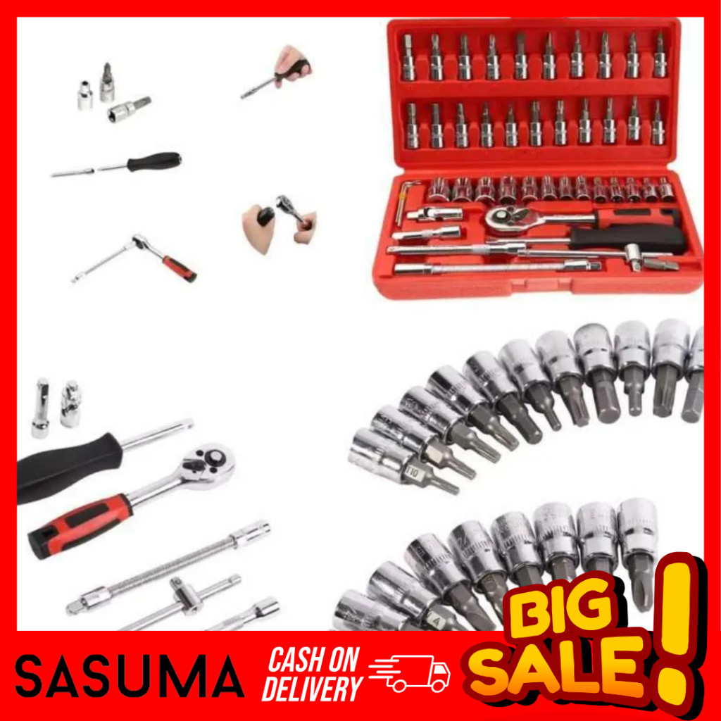 SASUMA Set Kunci Sok Kunci Shock 46 pcs Mobil Motor Lengkap Socket Tool Kit set Pas Ring Motor Mobil