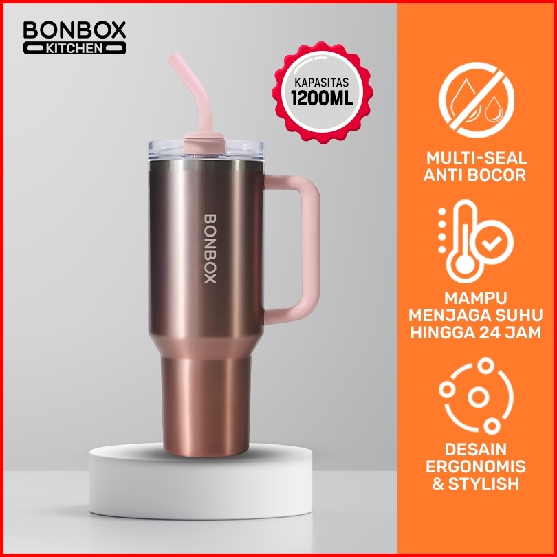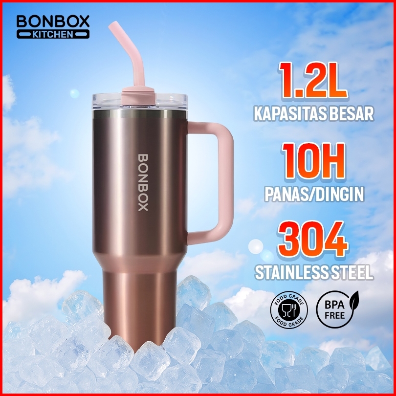 Bonbox Tumbler Sedot Raksasa 1200ml - 4 Warna Sistem Putar 3 Mode Minum Uji 304 Stainless Tahan Dingin 10 Jam Food Grade