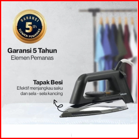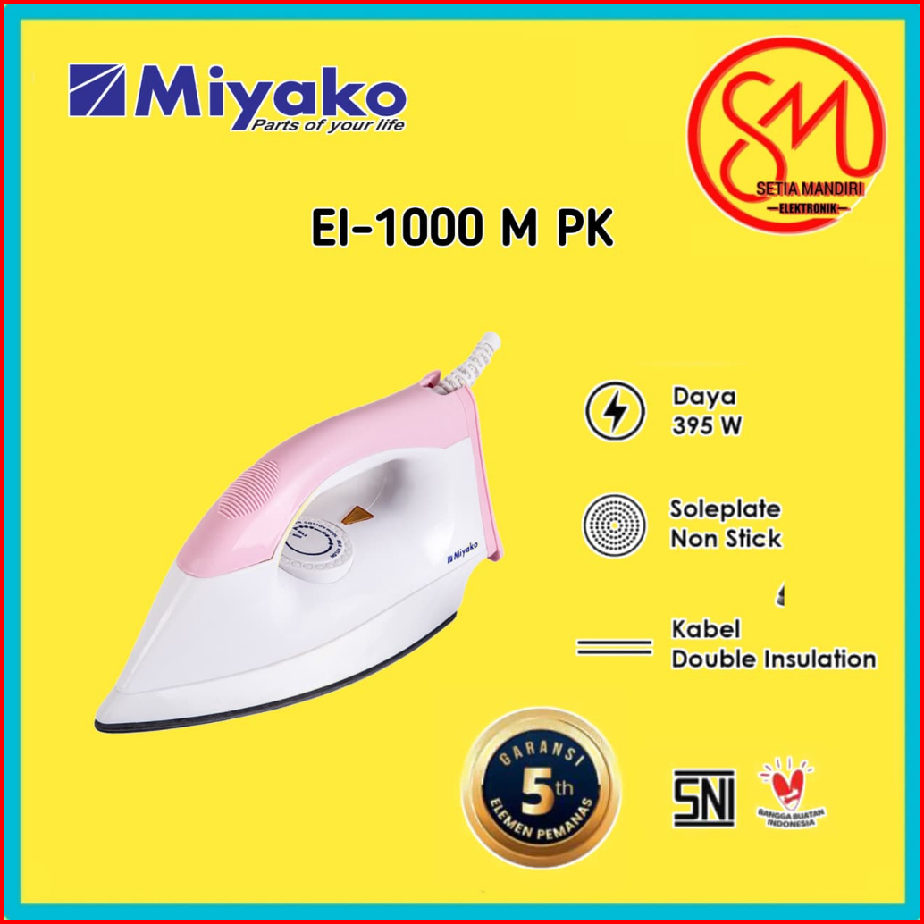 Setrika Miyako Non Stick 395w Black Anti Lengket Ei2000b Ei1000mbk - Mbl - Mpk