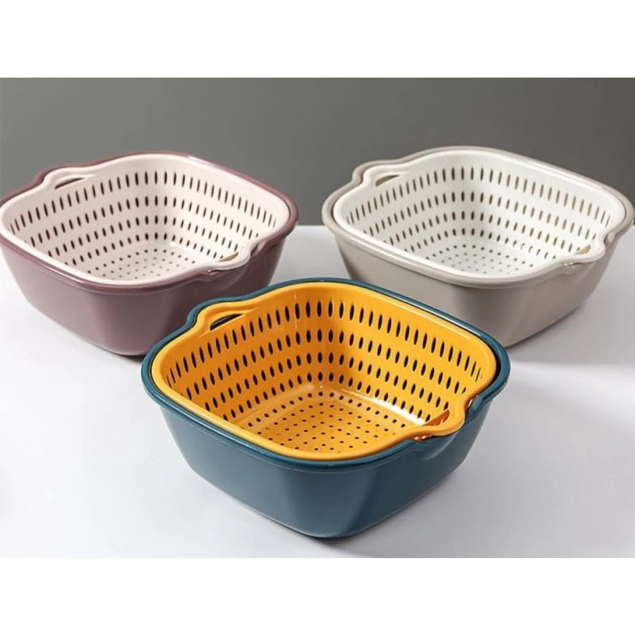 Keranjang Saringan Tirisan Wadah Cuci Sayuran Baskom Set