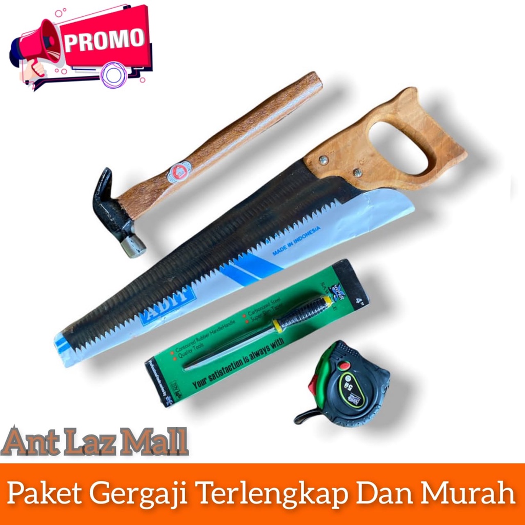 (PAKET) Gergaji Potong Anti Selip , Palu , Kikir , Dan Meteran 5 Meter - Palu Kambing Congkel Paku - Kikir Import Cap Viper - Meteran 5 Meter