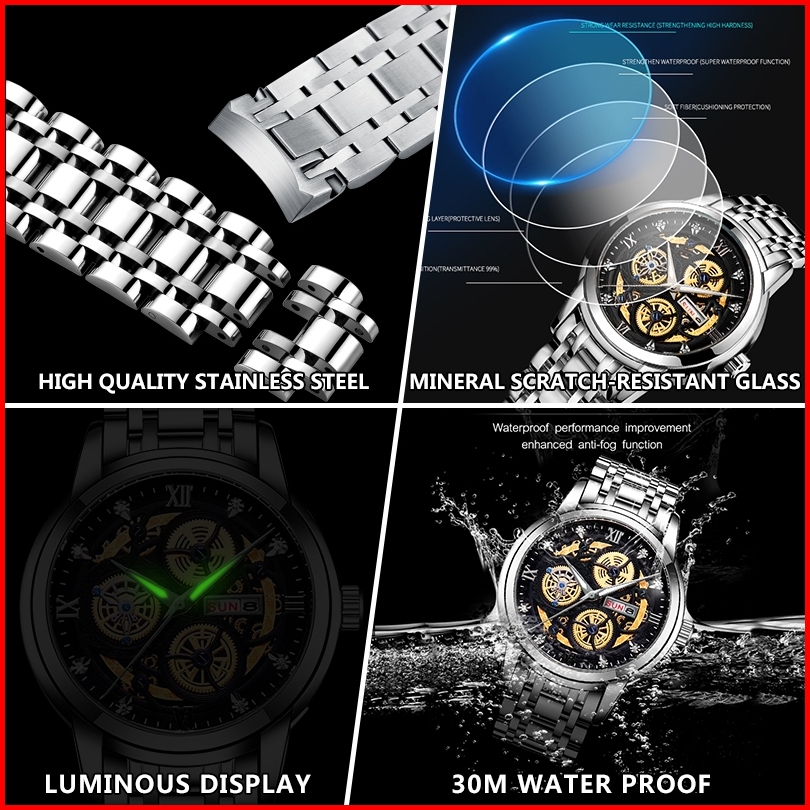 Zunpai Jam Tangan Pria Bisnis Asli Anti Air Jam Pria Terbaru Kalender Bercahaya Baja Tahan Karat Jam Pria Fashion Hadiah