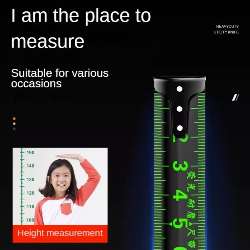 5M/10M Penggaris neon berteknologi hitam meteran anti karat dengan pita pengukur impor menebal penggaris Meteran Tukang