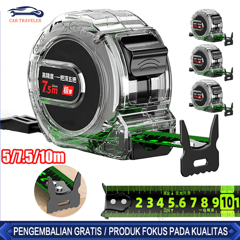 Meteran Tukang Meteran Pengukur Anti Karat 10/5 Meter Tahan Banting Bahan Stainless Steel Tembus Pandang Rol Pengukur