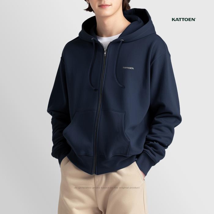 KATTOEN - JAKET NAVY BASIC HOODIE ZIPPER POLOS FLEECE 290 GSM - PULLOVER, M
