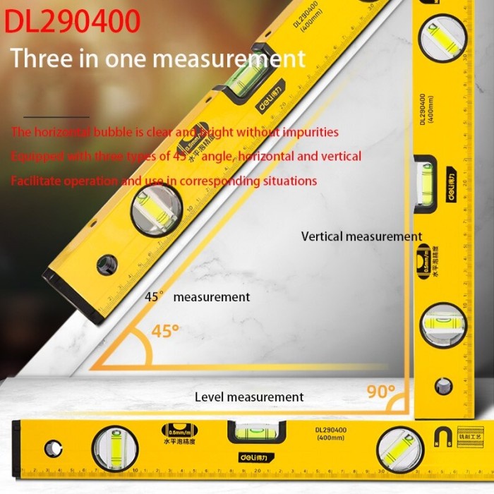 Deli Spirit Level Waterpass Magnet Aluminium Akurat Perkakas DL290X00