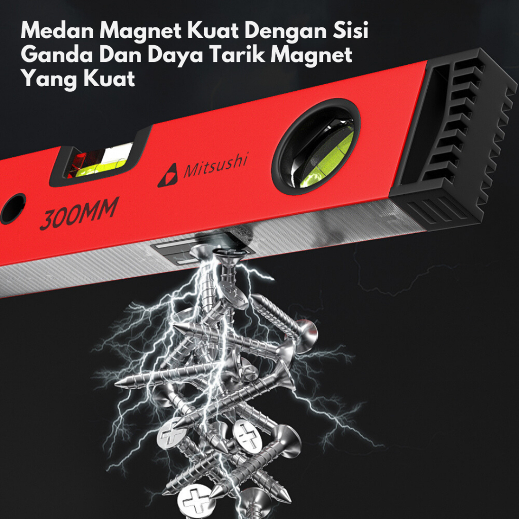 Mitsushi Spirit Level Waterpass Magnet Penggaris Pengukur Horizontal Akurat Perkakas 30/40/50/60/80/100CM