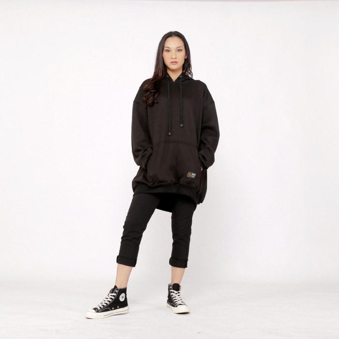 JENAY HOODIE JUMPER POLOS JUMBO BIGSIZE (L XL XXL, XXXL, XXXXL, XXXXXL) HITAM FLEECE OVERSIZE PRIA WANITA - HITAM, 2XL