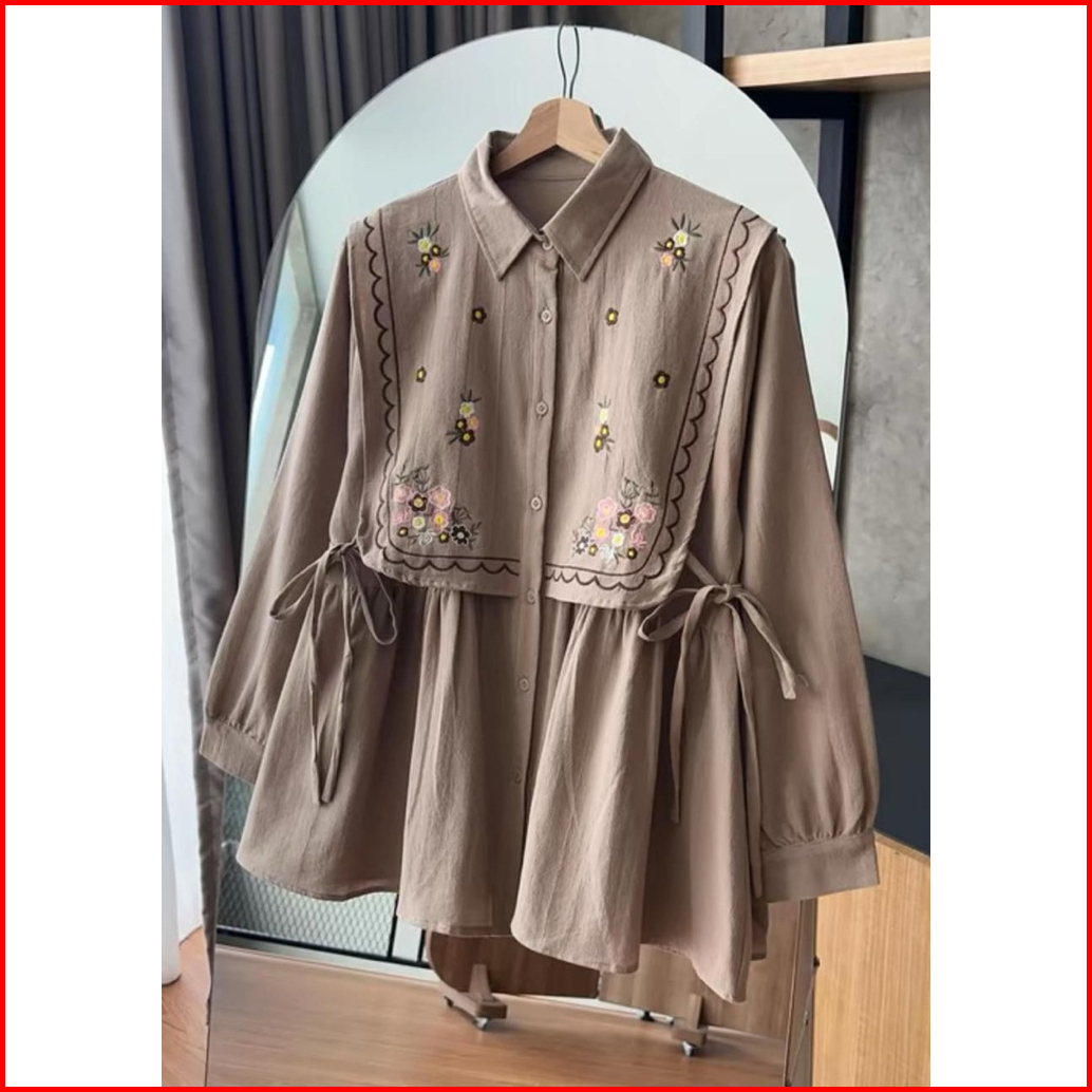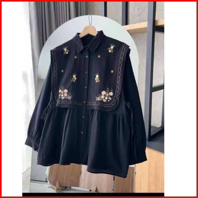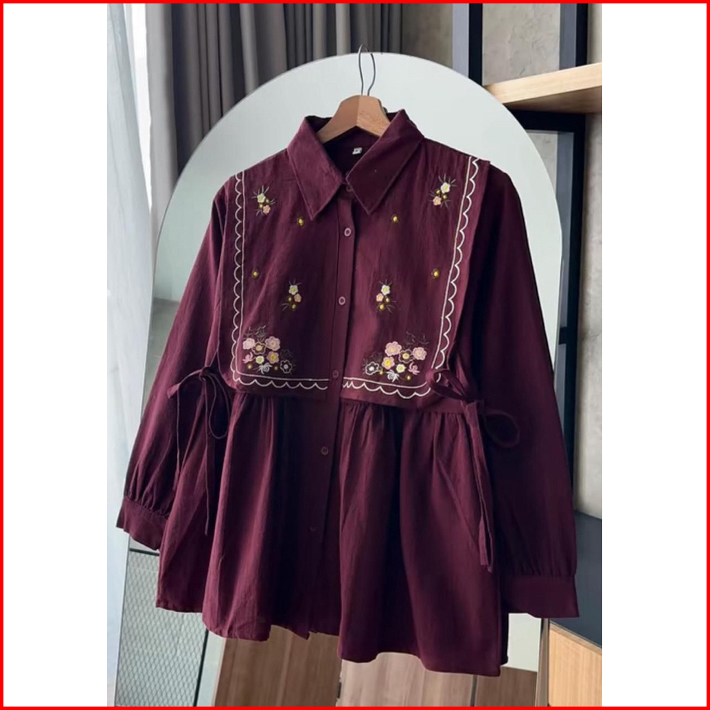 Narika Shirt Kemeja Vest Ikat Bordir Linen Premium Atasan Wanita Panjang