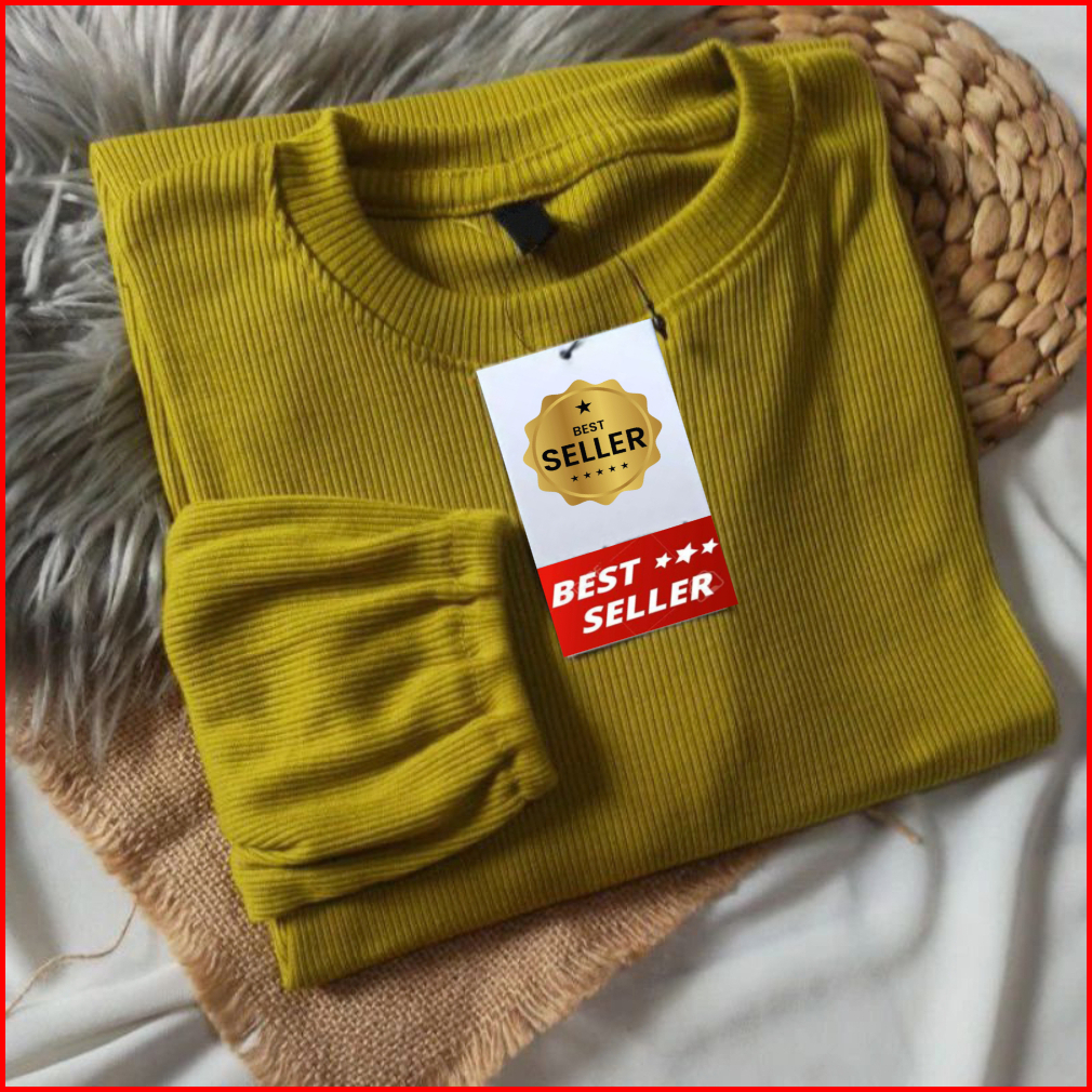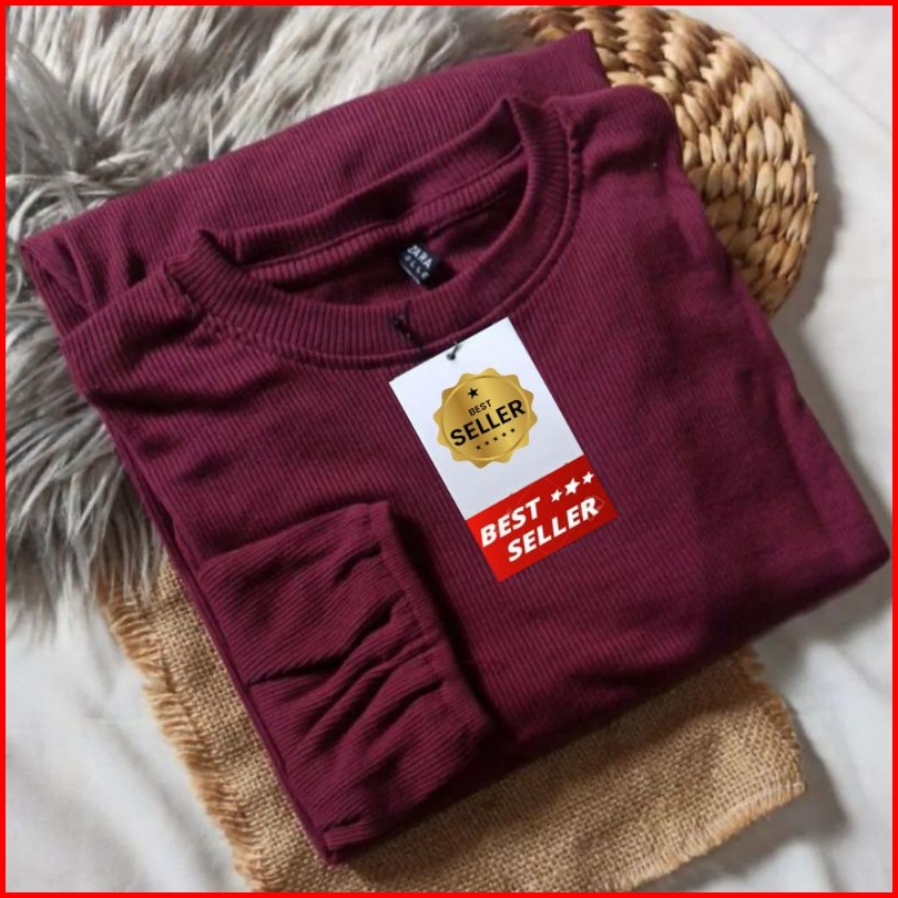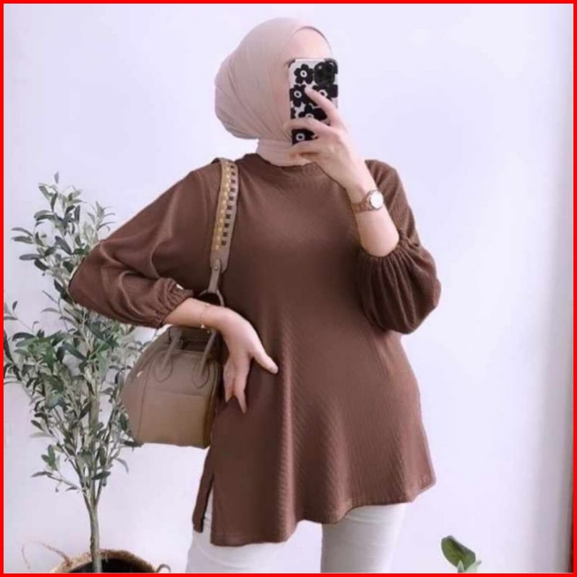 Hanover Blouse Knit Rib Size L-xl-xxl Trendy Atasan Wanita Blouse Hanover Tangan Balon Terbaru