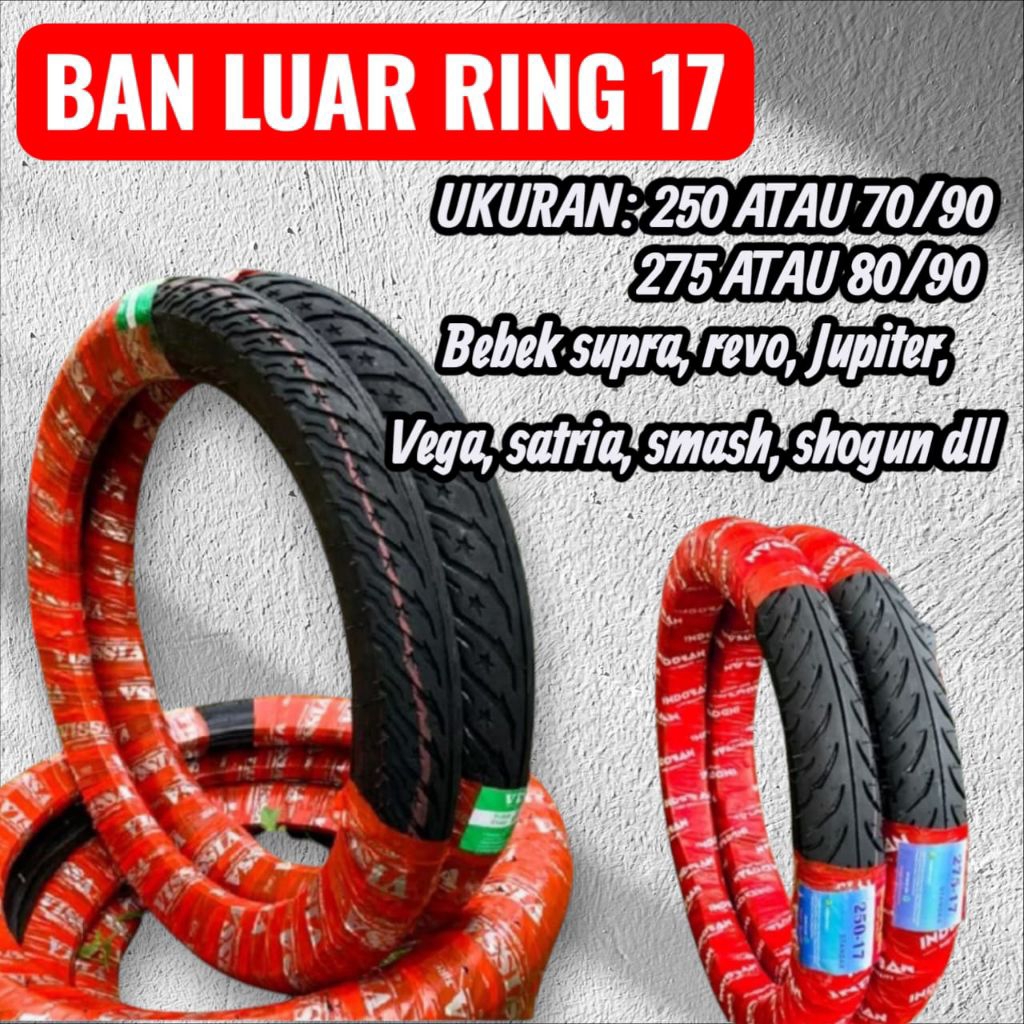 Ban Luar Motor Bebek Standar Ukuran 250,275,300 Ring 17 Untuk Motor Supra, Smash, Jupiter,Vixion lama,Shogun,Vega,dan la