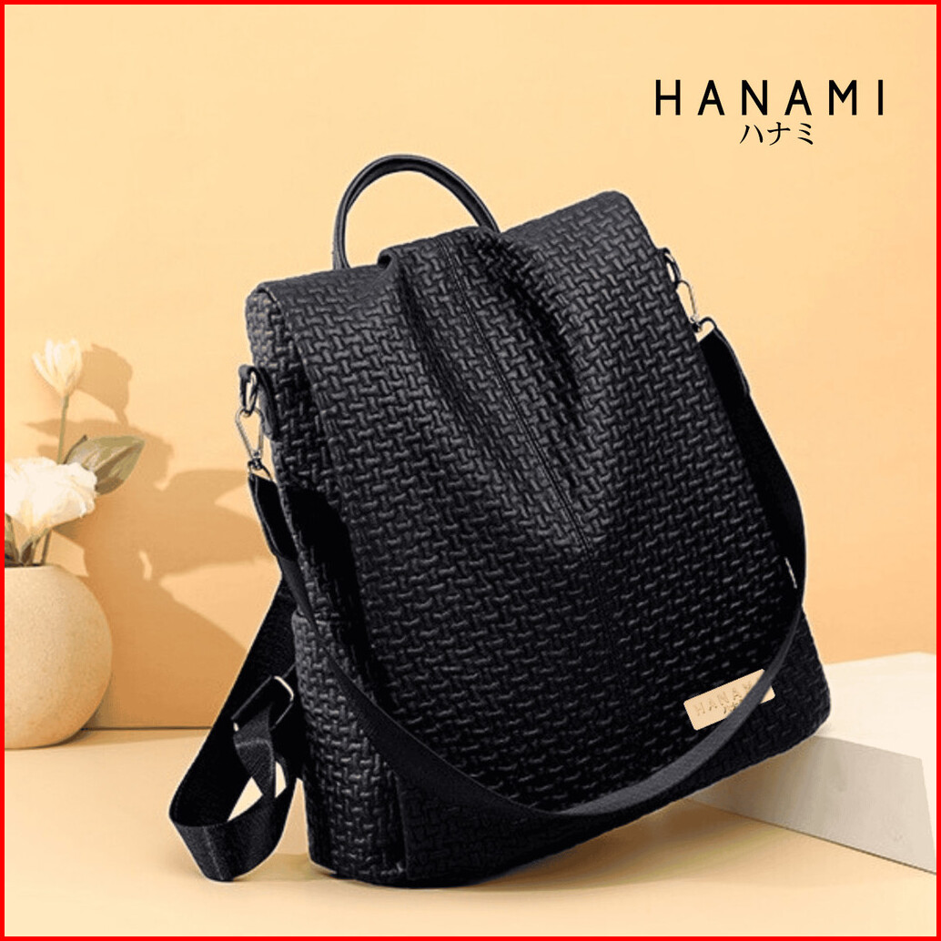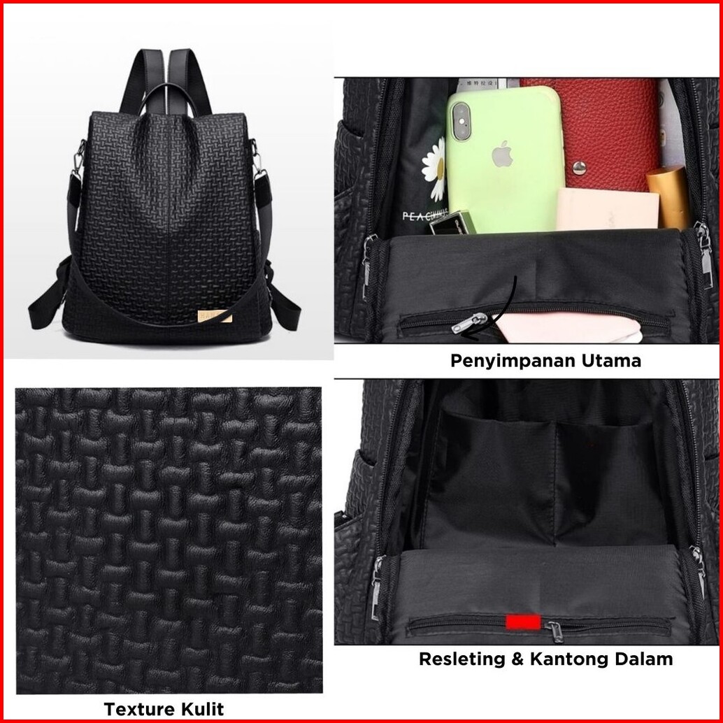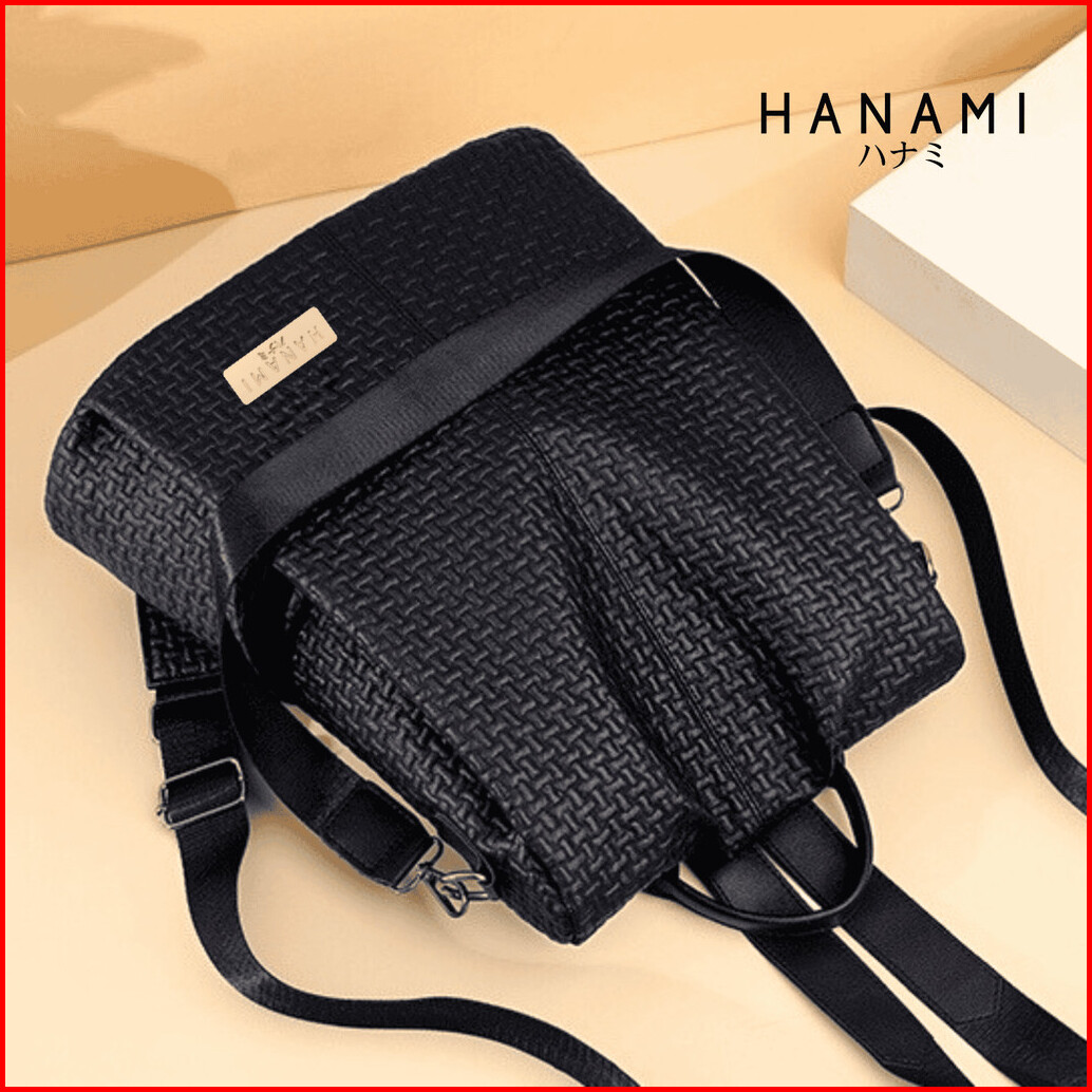 Hanami Tas Ransel Wanita Kulit Premium Korea Cewek Sekolah Gendong Croco Hitam Maelis Kuliah Ta879b5