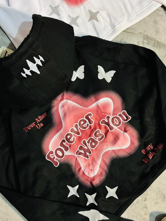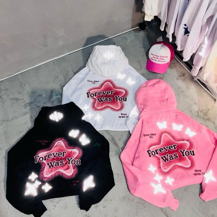 JDMCO - HOODIE BOXY MOTIF FOREVER WAS YOU KUPLUK SHERPA SABLON DTF + REFLECTIVE FLEECE 280-300 GSM - HITAM, M