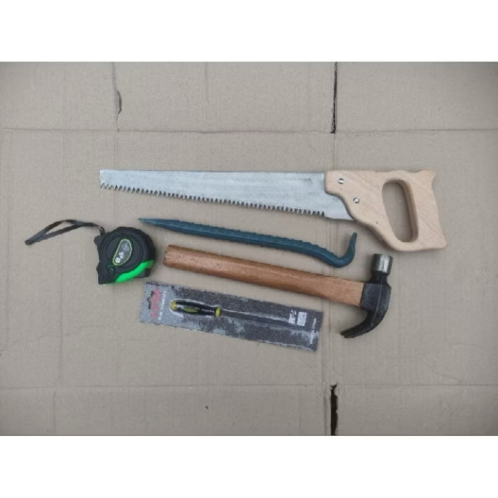 Paket Alat Bertukang Lengkap Gergaji , Palu, Kikir, Meteran, Linggis , Cetok Semen ,Benang Nilon Lot