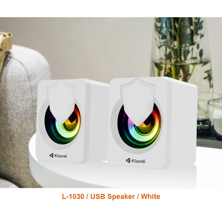 Gaming Speaker Komputer/Laptop L1030 LED RGB Light With Switch Volume Control - Putih