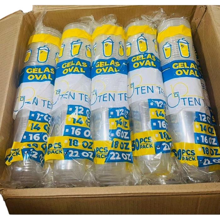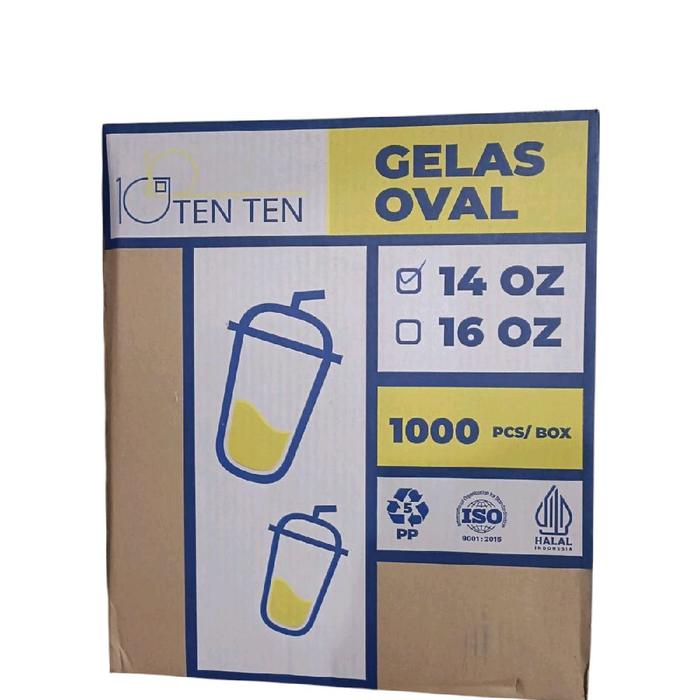 1 dus ( 1000 pcs ) Gelas Oval TEN TEN 12oz 14oz 16oz 18oz 22oz / Gelas Plastik Oval Ten Ten / U Cup