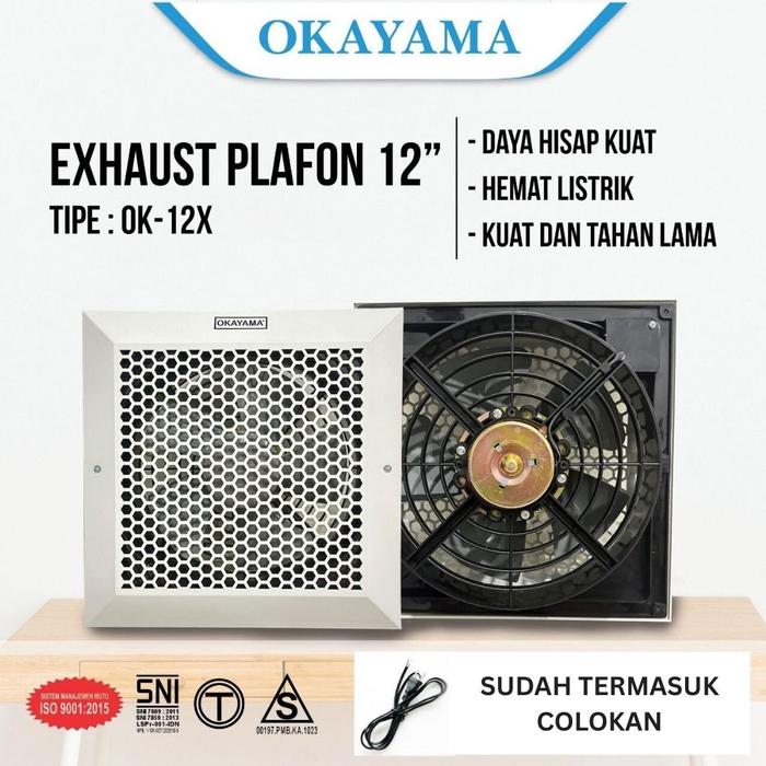 Kipas Angin Exhaust Fan/ Hexos Plafon OKAYAMA 12 IN - OK12X penyedot udara ruangan biar tidak panas - 12X+COLOKAN