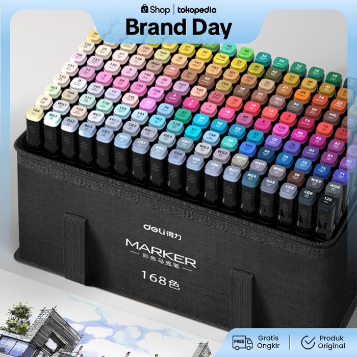 Deli Spidol Sketsa Profesional / Sketch Marker 168 Warna Dual Tip HM902